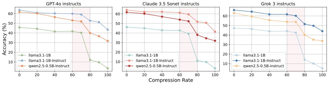 To examine redundancy in Chain-of-Thought reasoning, smaller models were guided by larger models to generate CoTs for GSM8K. The CoTs were refined via LLM-assisted feedback by removing repeated, filler-like, and overly fine-grained tokens. Results indicate that 60%–80% of CoT tokens are redundant across most models.